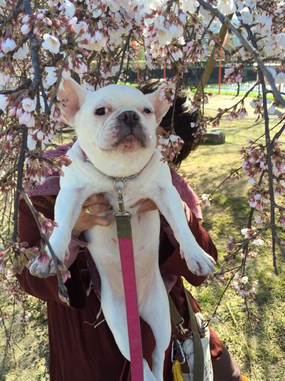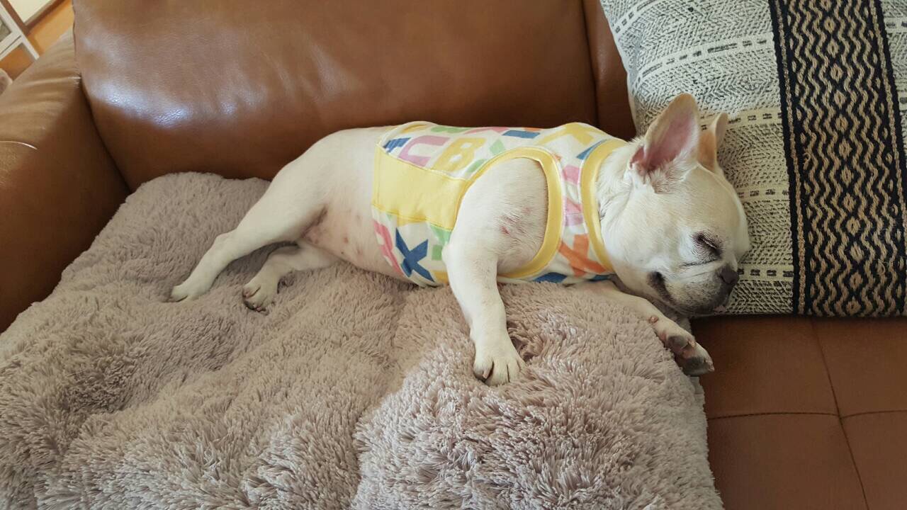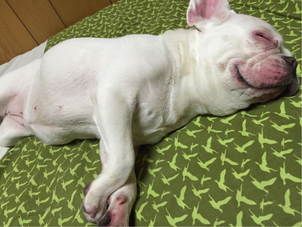 フレンチブルドッグhippieの肉球の上でコロコロ転がされる
