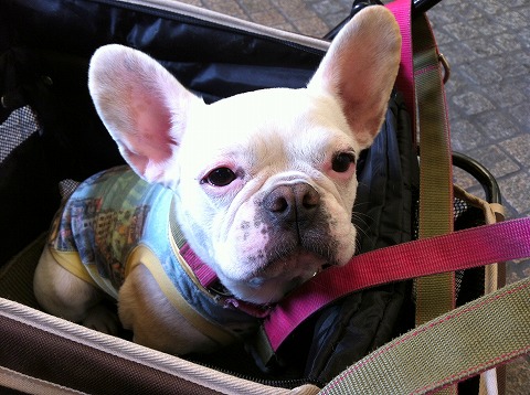 フレンチブルドッグhippieの肉球の上でコロコロ転がされる