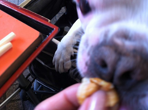 食べてる間、いったい何組の人たちがhippieを撫でただろう~~~
