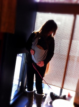 虎丸はアタシのお腹のスリングに頭からニョロニョロ入っていって
