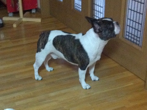 フレンチブルドッグhippieの肉球の上でコロコロ転がされる
