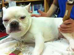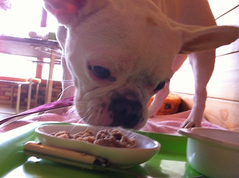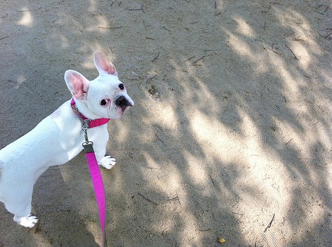フレンチブルドッグhippieの肉球の上でコロコロ転がされる