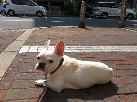 と、cheeseも一緒に道でしゃがんで車を見た