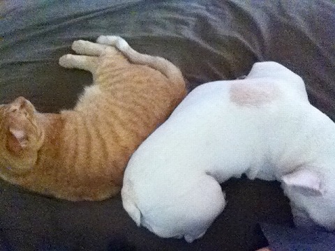 ひとしきり虎丸に舐められ一人で寝たいのに引っ付かれる