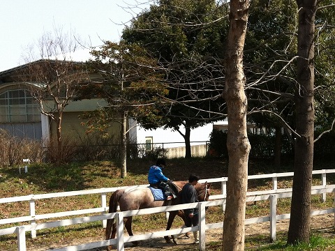 歩き出すと、小さな男の子が乗馬中