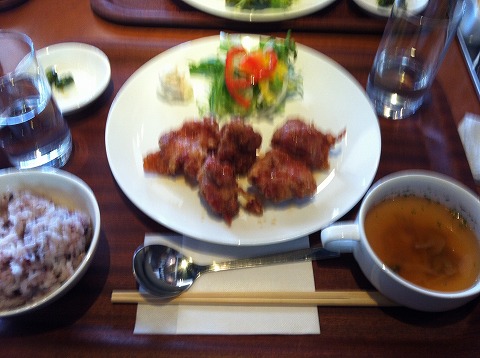 そして、ランチは鶏のから揚げ黒酢あんと十六穀米
