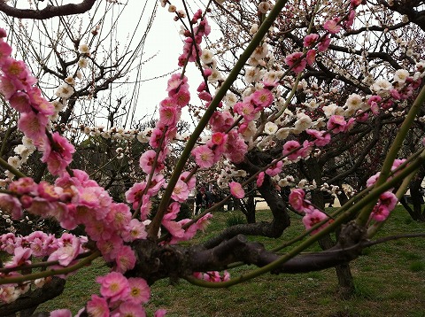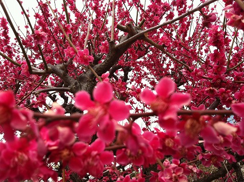 白も赤も両方咲いちゃう、すげー梅!