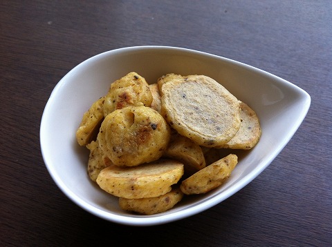 余った、溶き卵・パン粉・小麦粉に、ごまや削り節や全粒粉を入れて