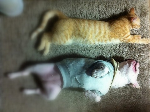 さくらとこたろうは、朝から二時間散歩の後で「なんだよ~もう~」