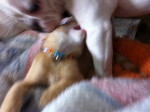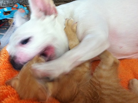 すでに小さいワンコがいたらしく、「キャンキャン」鳴き声が聞こえるぅうう( ´Д`)