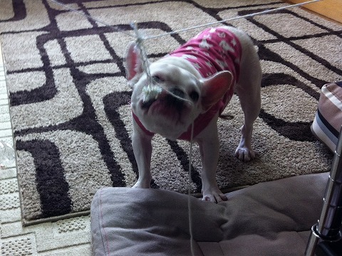 ただ、虎丸の為に毛糸を結んで、途中に毛糸玉をぶらさげた「おもちゃ」のつもりの