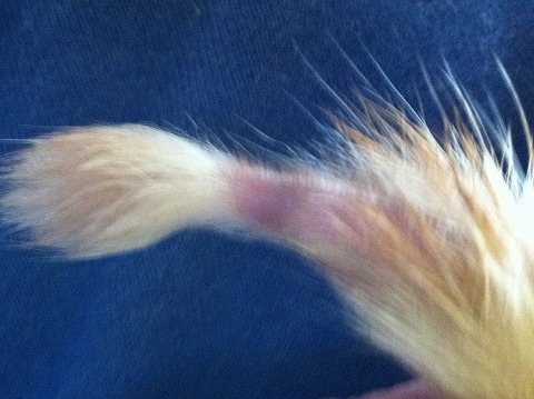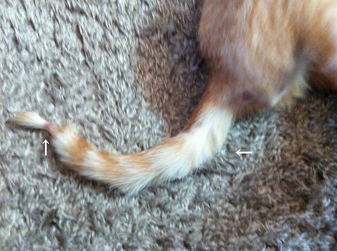 尻尾も根元に近いほうは、毛がはえて全く分からない