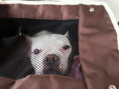 虎丸はスリングごと助手席に引っ掛けてたのに