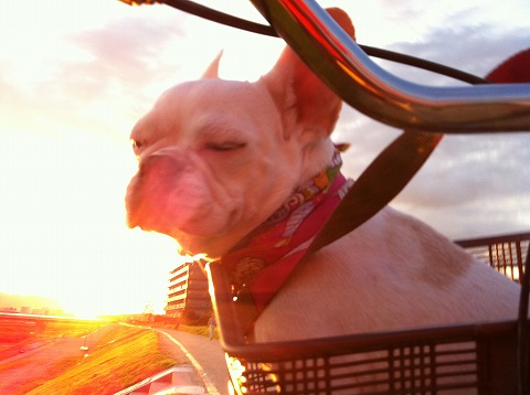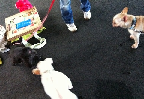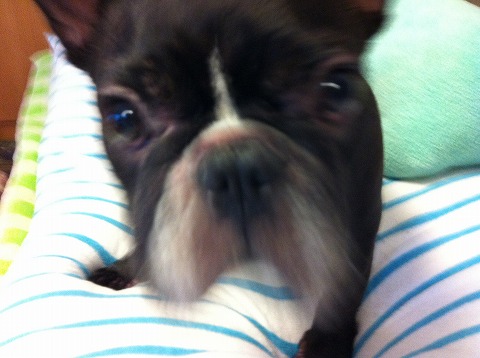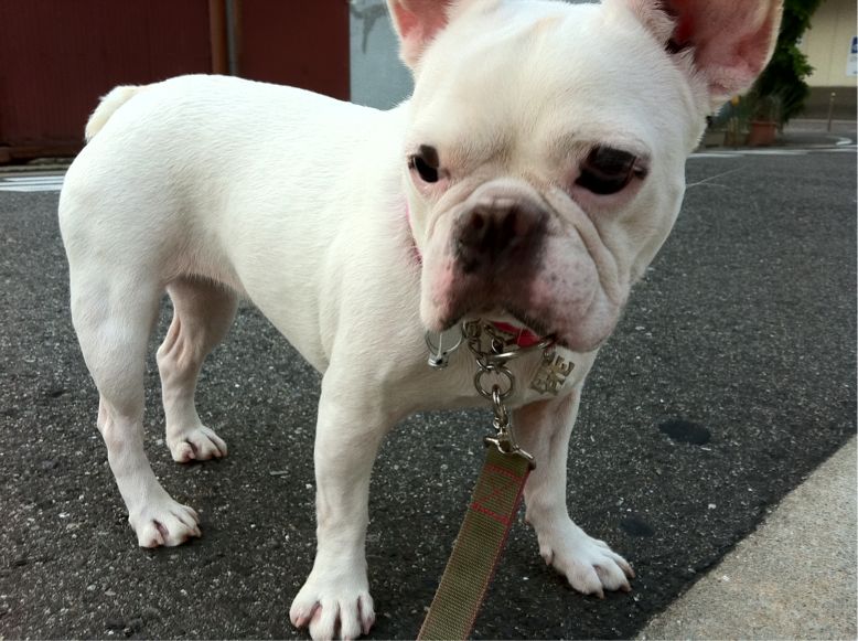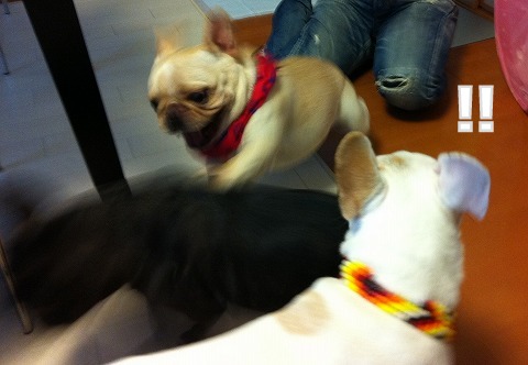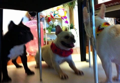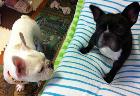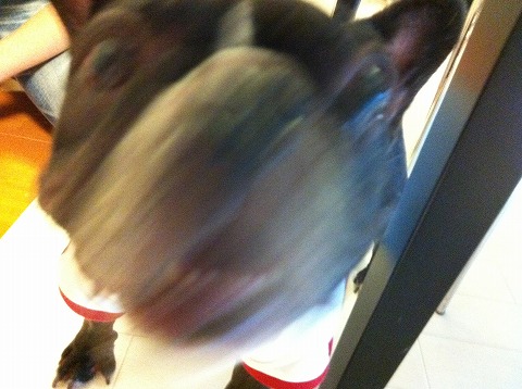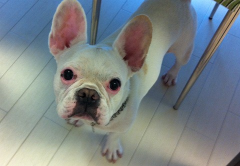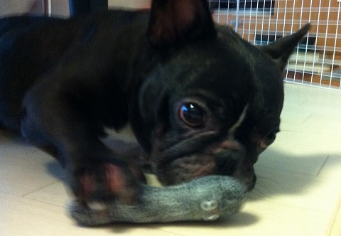フレンチブルドッグhippieの肉球の上でコロコロ転がされる