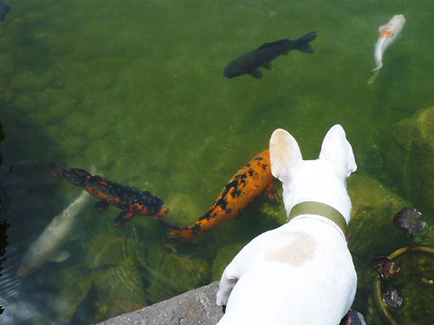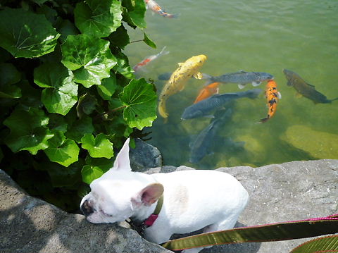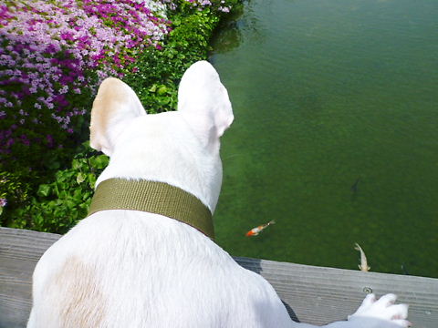 そのうち、パッシャと飛んだり、「餌くれよ~!」ってパクパクしだす鯉にビビッて、退散。
