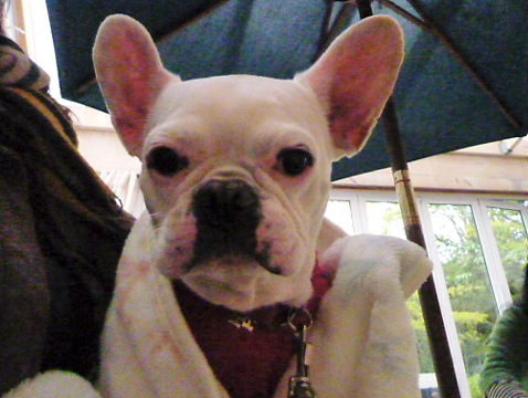 この時も、グレートピレニーズちゃんが、雨上がりのテラスにいらっしゃいました