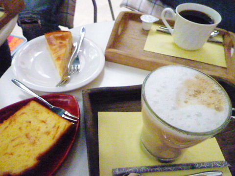 豆乳りんごチーズケーキと、オレンジのパウンドケーキを三人でわけわけ