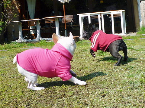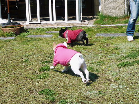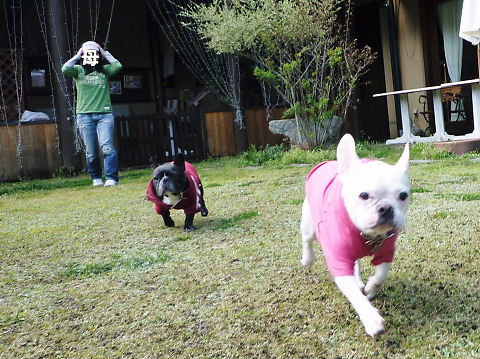 しかも、雨上がりのお庭でこんなに一緒に走ったもんねえ!?