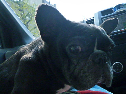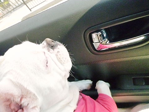 心配なので助手席にリード固定して再出発。