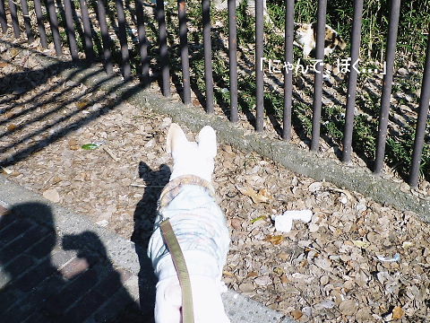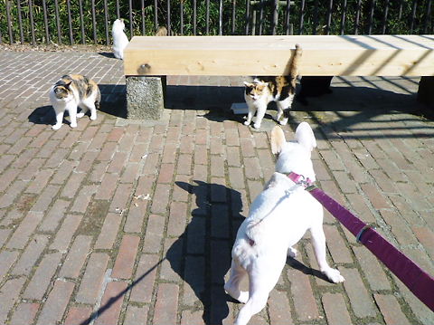 にゃんこ達は威嚇してるけど、hippieは特になし。見るだけ…