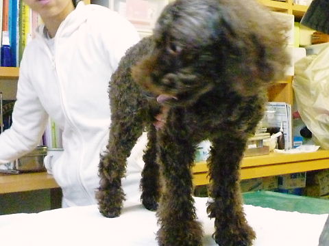 かりんちゃんは、初めての病院&先生で不安いっぱいなのに輪をかける悪犬。