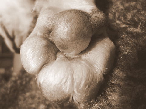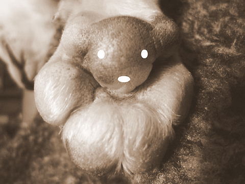 フレンチブルドッグhippieの肉球の上でコロコロ転がされる