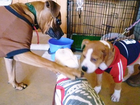 看板犬レオに弟が出来たと聞いて、早く会いたかったよ~