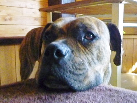 ピントが合わなかったけど、その上にあご乗せジョニー