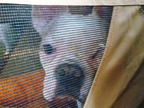 後部のケージから、片目が潰れるほどガン見。