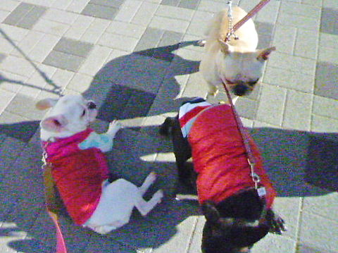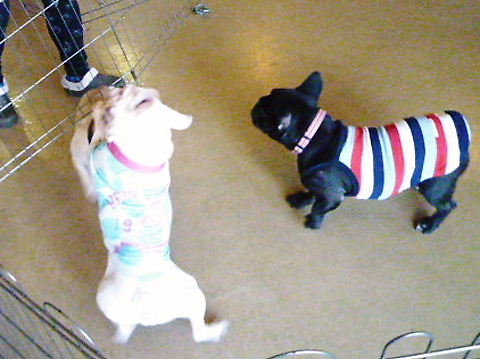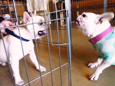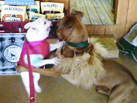 「MOLTISH」さんに到着して、他の子たちに仲良さをアピールするhippie。