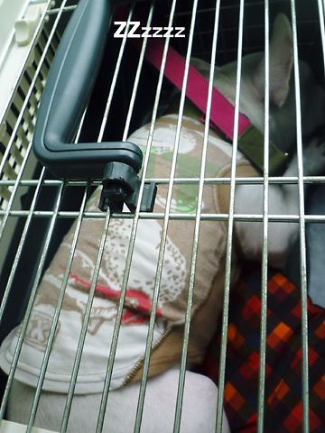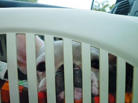 移動用ケージも、NEWバージョンにしたら、やっぱりでかくて後部座席へ。