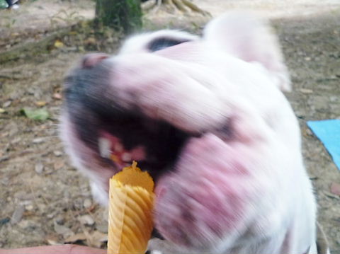 hippieにもプリーズ♪ 変な所にシワ寄せてスプーンから頂く…