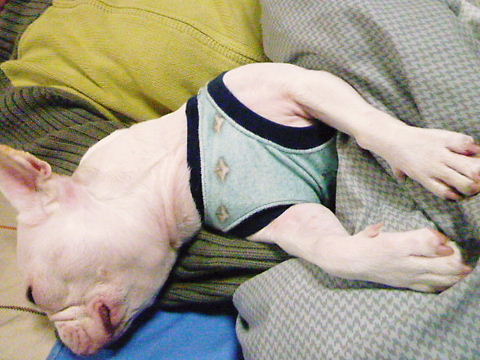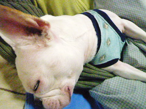 朝、ハウスから出すと、一直線にpapaのベッドへ。