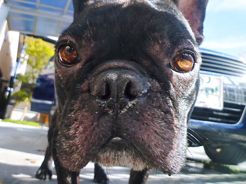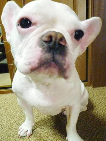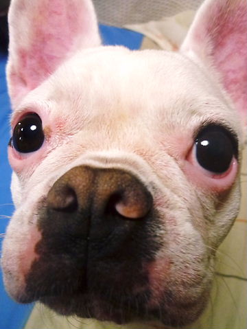 フレンチブルドッグhippieの肉球の上でコロコロ転がされる