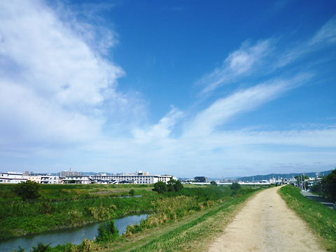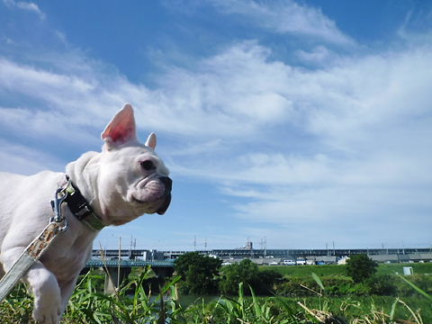 堤防の横の車道を歩いてたけど、hippieが行きたそうだったので、つい上がって見た。