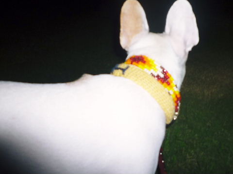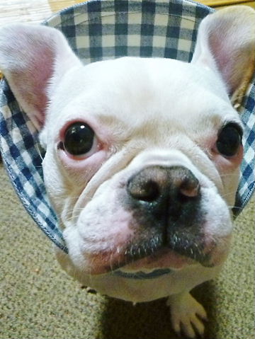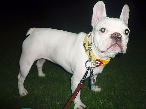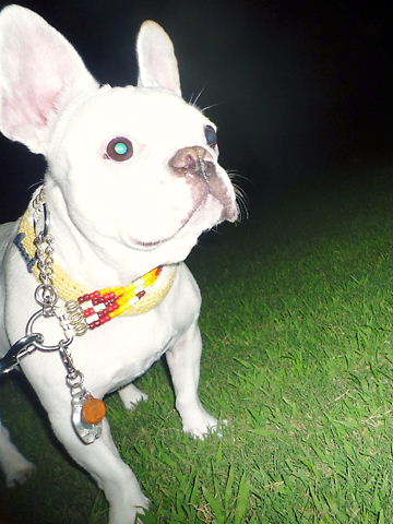 フレンチブルドッグhippieの肉球の上でコロコロ転がされる