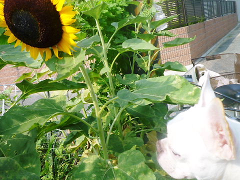 朝一予約に自転車乗って~途中、ひまわりが咲いてたので記念に一枚。