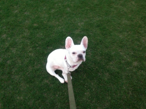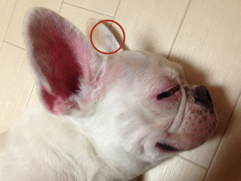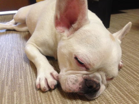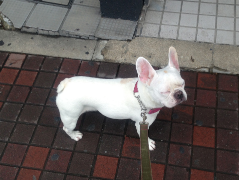 フレンチブルドッグhippieの肉球の上でコロコロ転がされる