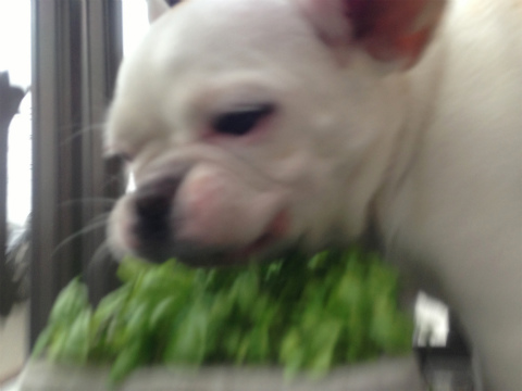 と、思ったら芽が出たばかりのバジルをモシャモシャ(°Д°)!