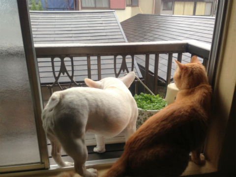 またまた、じとーーーーっと見つめるので、窓を開けて外を見せてみた
