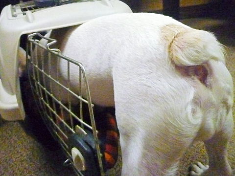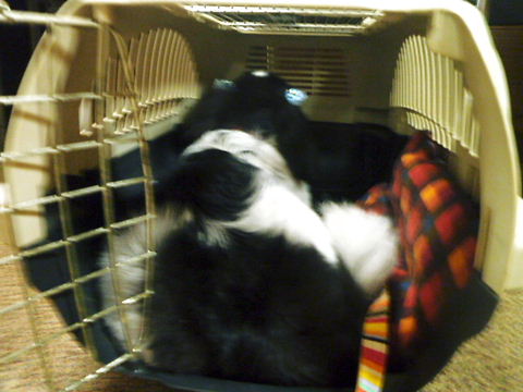 今回はベッドの下に入れないように、ガードして変わりにhippieの小さいケージに