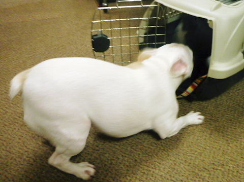 前回、とってもびびんちょで、papaのベッドの下にもぐりこんで出てこなかったので、