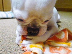 帰宅後、洗濯物の中から自分のタオル引っ張り出して、当り散らす。