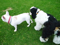 始めましての、アメリカンコッカー♂のビート君。右のエースのおうちにお泊り中。