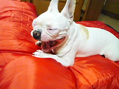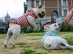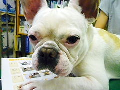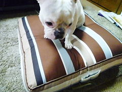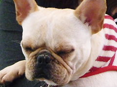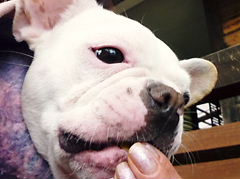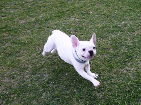 フレンチブルドッグhippieの肉球の上でコロコロ転がされる