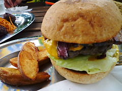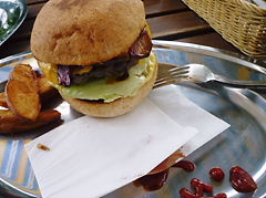 ワンコバーガーの匂いに、ムクッっと起きて、そのままアンニュイに食す。