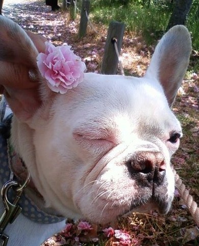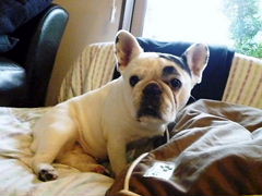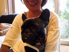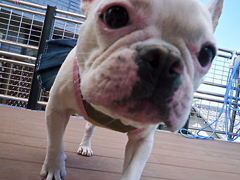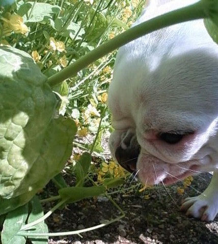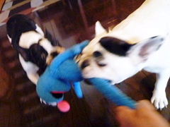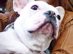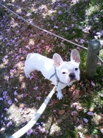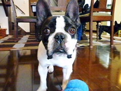 フレンチブルドッグhippieの肉球の上でコロコロ転がされる