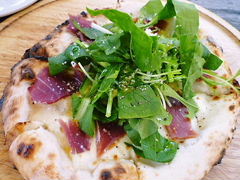 地元の有機野菜のサラダ・アンチョビトマトピザ・春野菜のペペロンチーノ・生ハムピザ