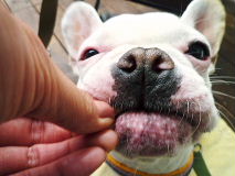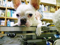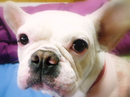 フレンチブルドッグhippieの肉球の上でコロコロ転がされる