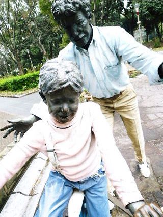 この銅像って、服や靴が本物?